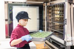 じっくり低温で焼き、急速に冷やすことでなめらかさと抹茶の風味を閉じ込めます。